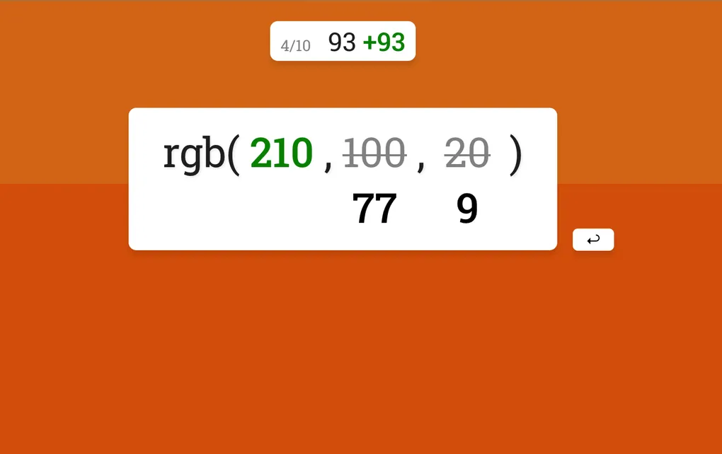By the next day, the bar had been raised to 939, averaging an impressive 93.9 points per round. As the leaderboard became more cutthroat, I noticed that players intent on making the leaderboard would simply refresh the page after making a particularly bad guess to avoid wasting time on a bad run. It also highlighted an interesting fact of RGB guessing: certain colors are easier to identify than others (we learned that shades of yellow/brown were particularly difficult), so part of the strategy for getting a high score was just playing enough times for the RNG to produce an “easy” run.